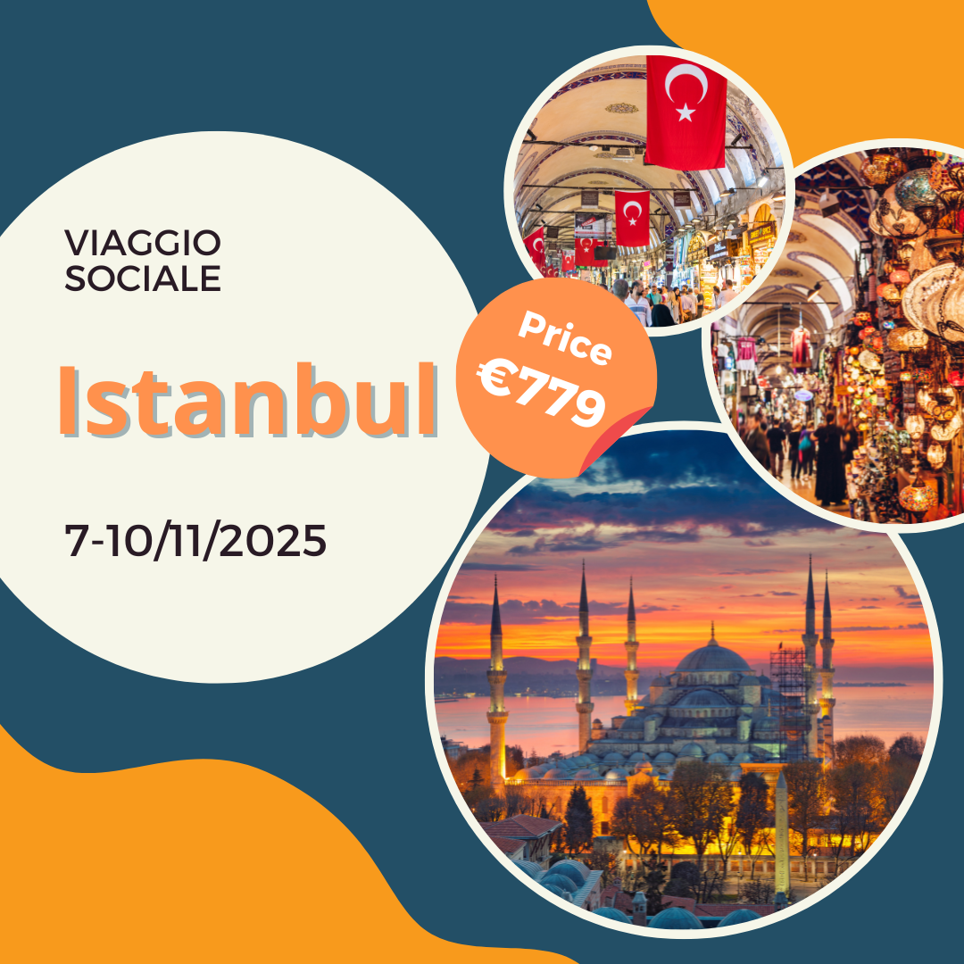 ✨ Viaggio a Istanbul – Dal 7 al 10 Novembre 2025 Un’esperienza indimenticabile tra storia, arte, profumi d’oriente e paesaggi mozzafiato. 🗓 PROGRAMMA DI VIAGGIO 📅 07 Novembre 2025 – Partenza per Istanbul Ore 9:30 – Partenza in pullman da Civitanova Marche, parcheggio Globo Ore 10:30 – Fermata a Marotta Trasferimento all’aeroporto di Bologna ✈️ Volo Turkish Airlines per Istanbul alle 14:50 Arrivo a Istanbul alle 19:30, accoglienza in aeroporto Trasferimento in hotel, sistemazione in camera Cena in hotel e pernottamento 📅 08 Novembre 2025 – Il Cuore Storico di Istanbul Colazione in hotel Visita guidata al centro storico: Ippodromo Bizantino Moschea Blu Santa Sofia Cisterna Basilica Pranzo in ristorante tipico Pomeriggio: Visita al Palazzo Topkapi con sezione Harem Chiesa di Santa Irene Gran Bazaar, il mercato coperto più grande al mondo Rientro in hotel, cena e pernottamento 📅 09 Novembre 2025 – Quartieri, Bosforo e Cultura Colazione in hotel Mattina: Visita ai quartieri storici di Balat e Fener Patriarcato Ecumenico di Costantinopoli Moschea di Rustempasa Mercato delle Spezie Pranzo sul Ponte di Galata Pomeriggio: Mini crociera sul Bosforo (versanti europeo e asiatico) Passeggiata al Galataport e vista esterna del Museo di Arte Moderna (Renzo Piano) Rientro in hotel, cena e pernottamento 📅 10 Novembre 2025 – Rientro in Italia Colazione in hotel Mattinata libera Trasferimento in aeroporto ✈️ Volo Turkish Airlines alle 13:10 per Bologna (arrivo 13:55) Rientro in pullman a Civitanova Marche 💰 QUOTA DI PARTECIPAZIONE: € 779 a persona Prezzo non Soci € 829 a persona ✅ Incluso nel prezzo: Volo A/R Turkish Airlines da Bologna Bagaglio da stiva 3 notti in hotel 4 stelle Trattamento pensione completa (3 colazioni, 2 pranzi, 3 cene – bevande escluse) Guida in lingua italiano per l’intero tour Minibus o pullman con A/C Crociera privata sul Bosforo Tasse di soggiorno Quota iscrizione Assicurazione medico, bagaglio, annullamento ❌ Non incluso: Ingressi a musei/siti e mance (circa € 150) Extra personali Supplemento camera singola: € 150 Riduzione terzo letto adulto: € 25 📌 MODALITÀ DI ISCRIZIONE E PAGAMENTO Prenotazione entro il 30 giugno 2025