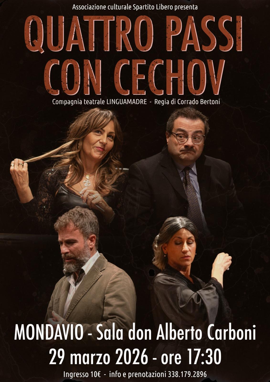Grazie a questo accordo, i nostri associati potranno partecipare gratuitamente allo spettacolo teatrale “Quattro passi con Čechov”, in programma: